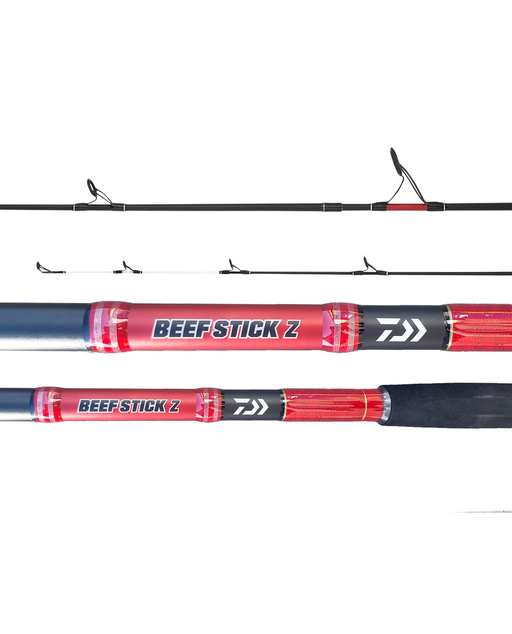 Tradition once again meets contemporary looks and styling with the release of the new Daiwa Beefstick Z range. An evolution of the popular Beefstick series. the new Z range once again features a composite graphite blank integrated with a tradition fiberglass tip. but takes it to another level with a new carbon outer scrim on the rod blank. This higher carbon design reduces blank weight to further enhance rod balance. feel and performance.