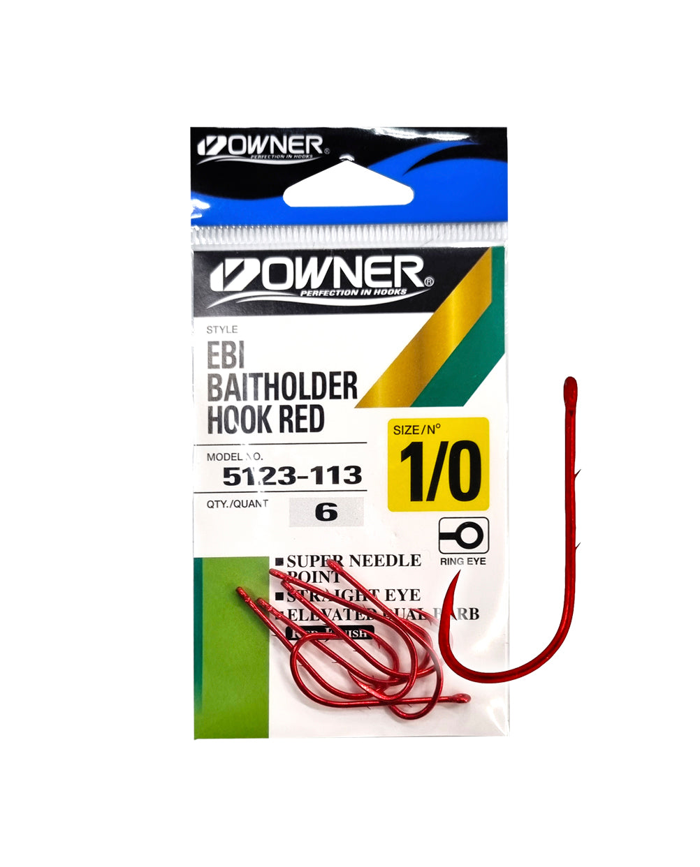 Ebi Baitholder hooks utilize a straight eye and dual barbs. Ideal for use with all baits for fishing both fresh and salt water species. Features include dual bait holders on shank. Super Needle Point. and Black Chrome finish.